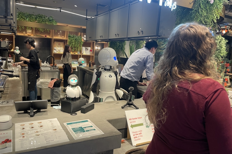 Noget af det, der gjorde særligt indtryk på alle, var besøget på en robotcafé. Her blev vi modtaget af robotter, men bag skærmen sad unge japanere, der på grund af angst eller andre udfordringer har svært ved at finde deres plads på arbejdsmarkedet. Via robotterne kunne de betjene og interagere med caféens gæster; mange af dem ældre, ensomme mennesker, som fandt både selskab og nysgerrige samtaler her.