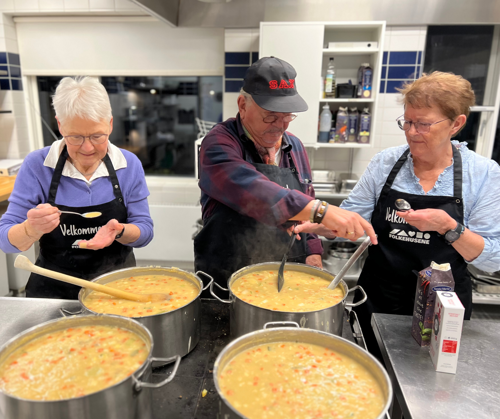 I dag er de 15 frivillige i gruppen Husets Venner, der arrangerer fællesspisninger og hjælper ved andre arrangementer i folkehuset. Som tidligere musiker og kok har Jens en central rolle i den musikalske underholdning og madlavningen, mens Helga, der er tidligere leder på socialområdet, blandt andet sørger for at organisere, koordinere og samle frivilligflokken.