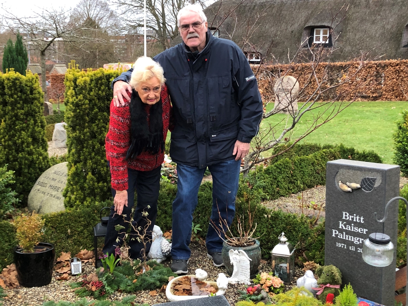 Aaby Kirke dannede i øvrigt rammen om Birthe og Aages bryllup for 38 år siden. På kirkegården ligger deres datter begravet. Et smukt pyntet gravsted.