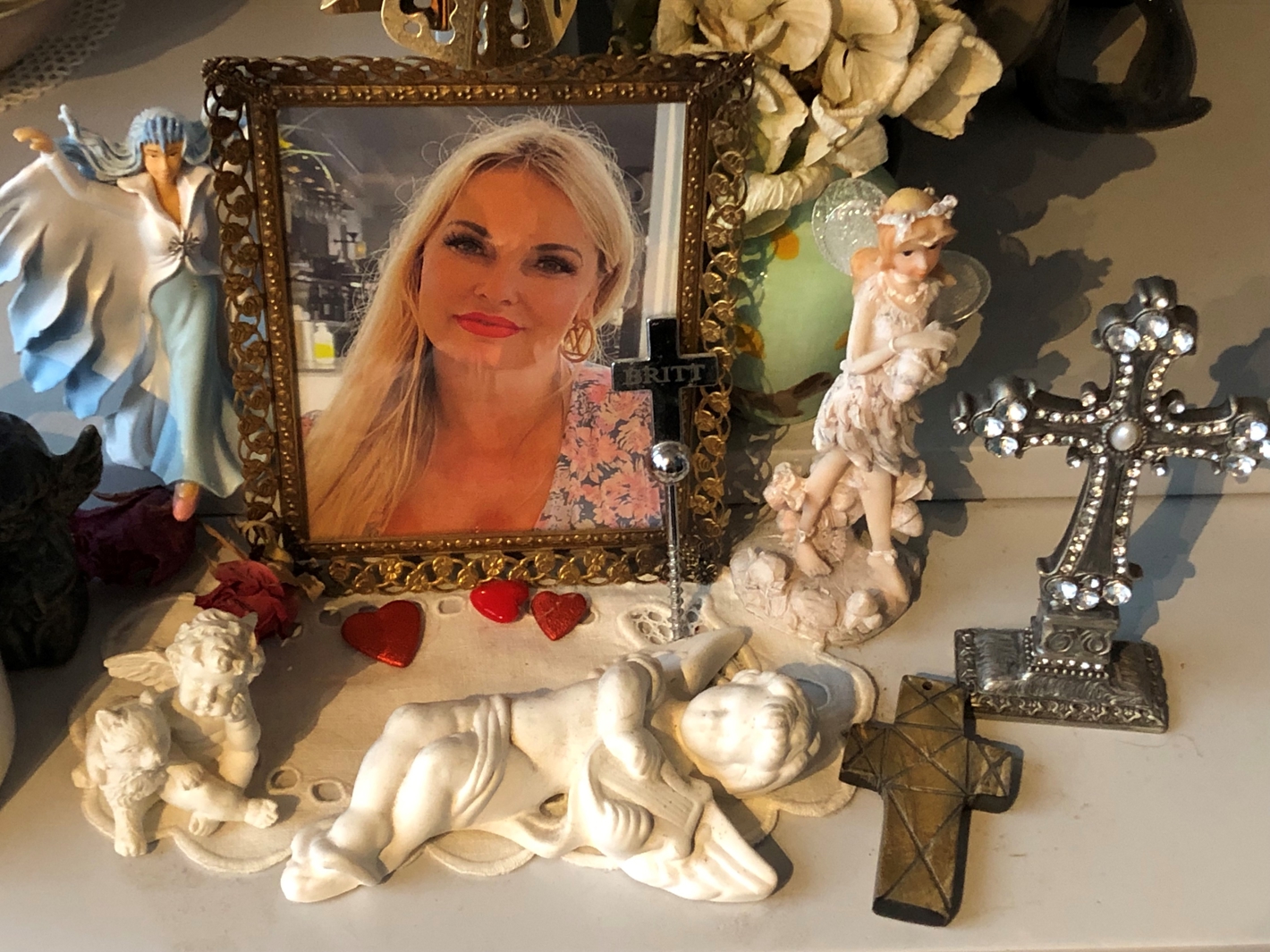 “Når jeg så sidder dér og kigger på det lille mindehjørne, kommer de gode erindringer om Britt frem. Det hjælper mig,” fortæller Birthe.