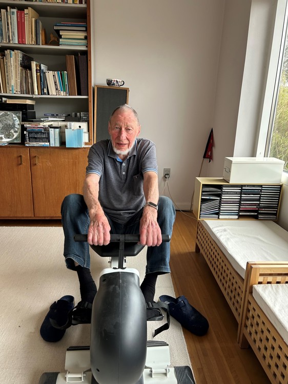 “Jo da. Regner og blæser det helt vildt, bliver jeg hjemme i stuen. Dér har jeg en romaskine, som jeg så kan træne i. Men ellers foretrækker jeg at komme ud i frisk luft.”