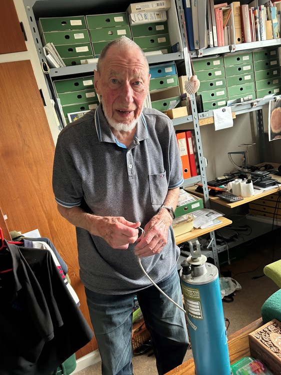 Foto: Børge er en moderne 100-årig. Han bruger computere, iPad og mobiltelefon.