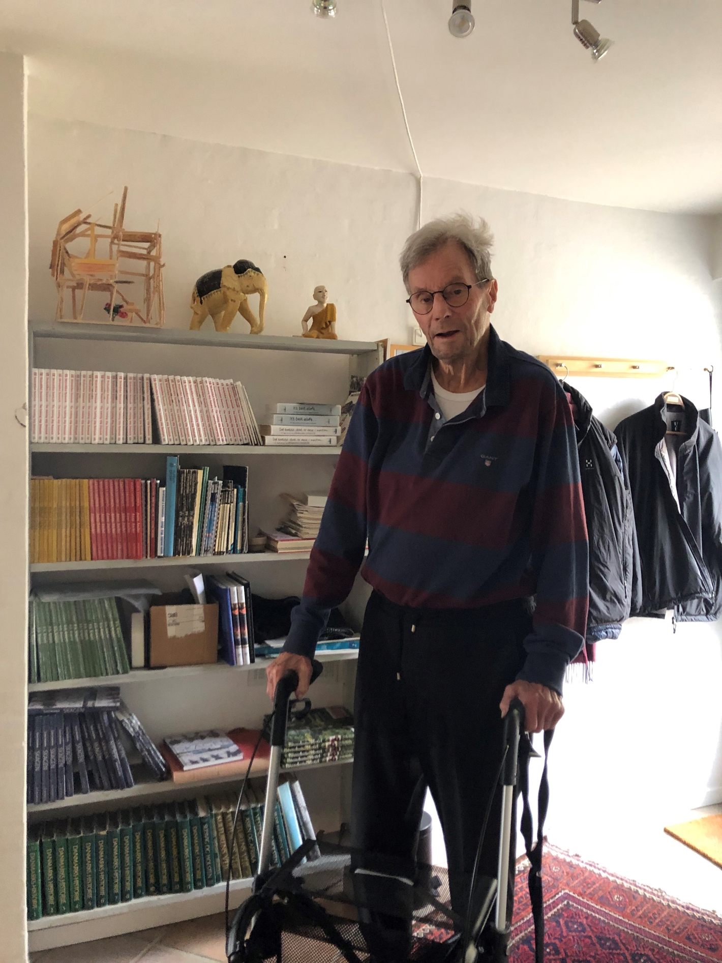 For nylig faldt Claus Jacobsen ude på sin terrasse og beskadigede det ene knæ. Uheldet var så voldsomt, at han i en periode har måttet gå med rollator. Han er overbevist om, at han snart kan ekspedere hjælpemidlet tilbage til Aarhus Kommune, så han igen kan gå sig en tur de par hundrede meter, han har ned til stranden i Studstrup.