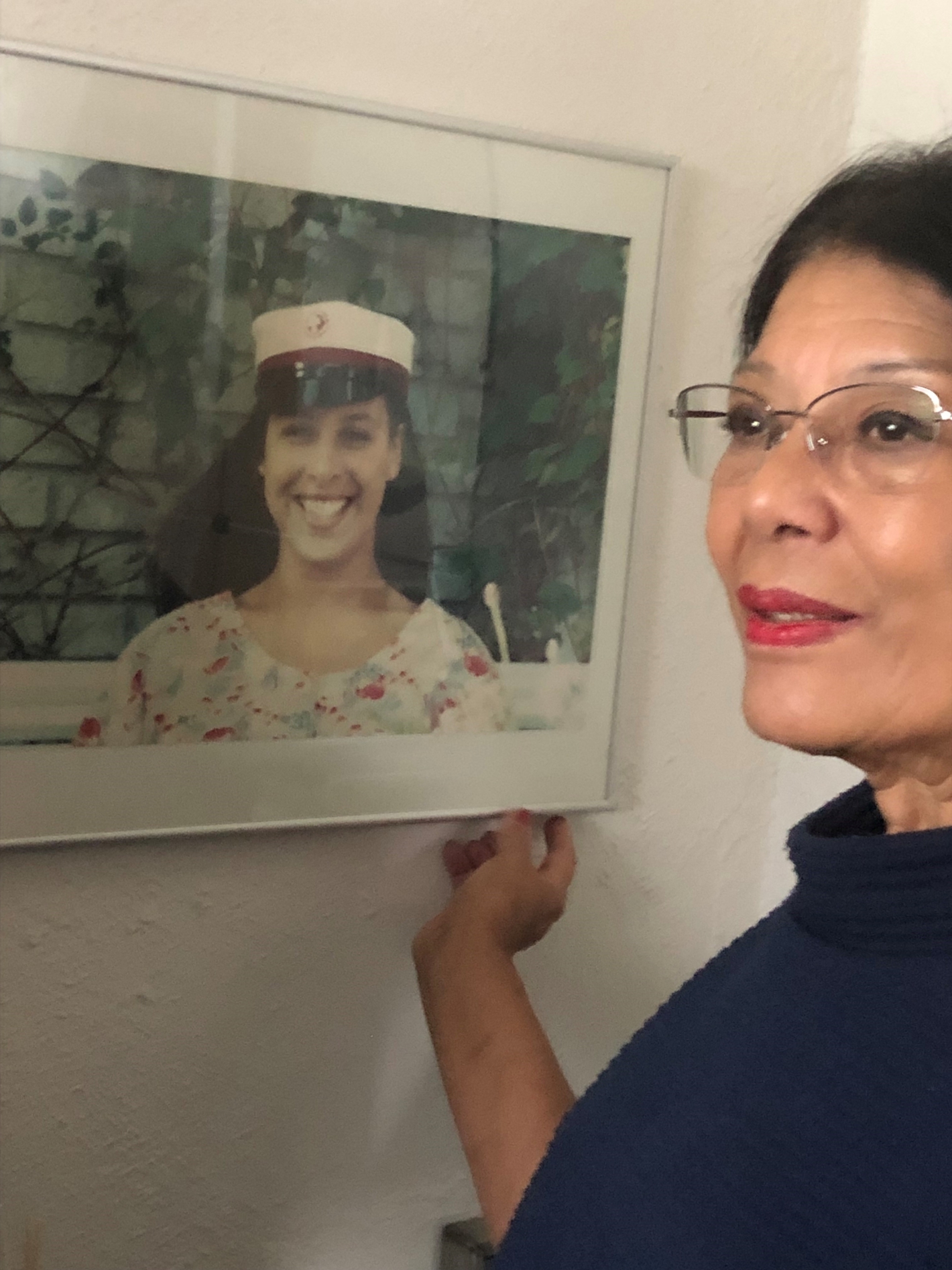 “Det var ikke, fordi vi skrev sammen særlig ofte. Måske to-tre gange om året. Men en dag blev vi begge opsatte på at mødes personligt. Jeg var lige fyldt 18 år og havde besluttet mig for at forlade min familie og mit land for at uddanne mig til sygeplejerske i London. Da jeg kendte Ib fra vores brevskrivning, lå det lige til højrebenet at mellemlande i Danmark på vejen til England.”