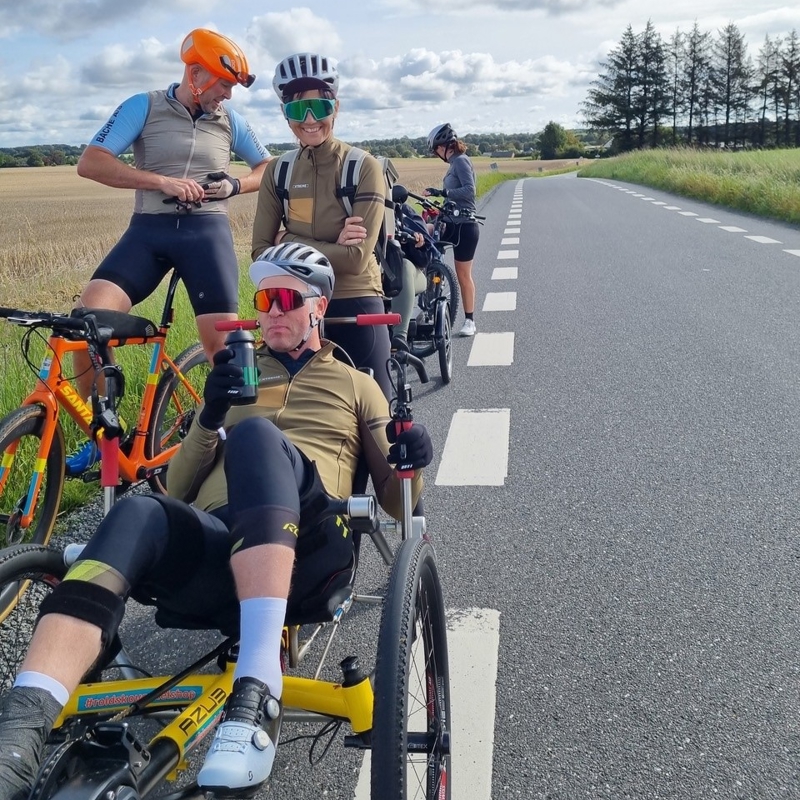 ”Det var en tur fra Grænsen til Skagen på 500 km over otte dage - ca. 65 km om dagen. Med omkring mig var der to følgebiler, et team af hjælpere og andre, der ville cykle med. Og vi cyklede i al slags vejr,” fortæller Michael begejstret. ”Og så var det rigtig skønt at gense den smukke danske natur fra cykelstien.”