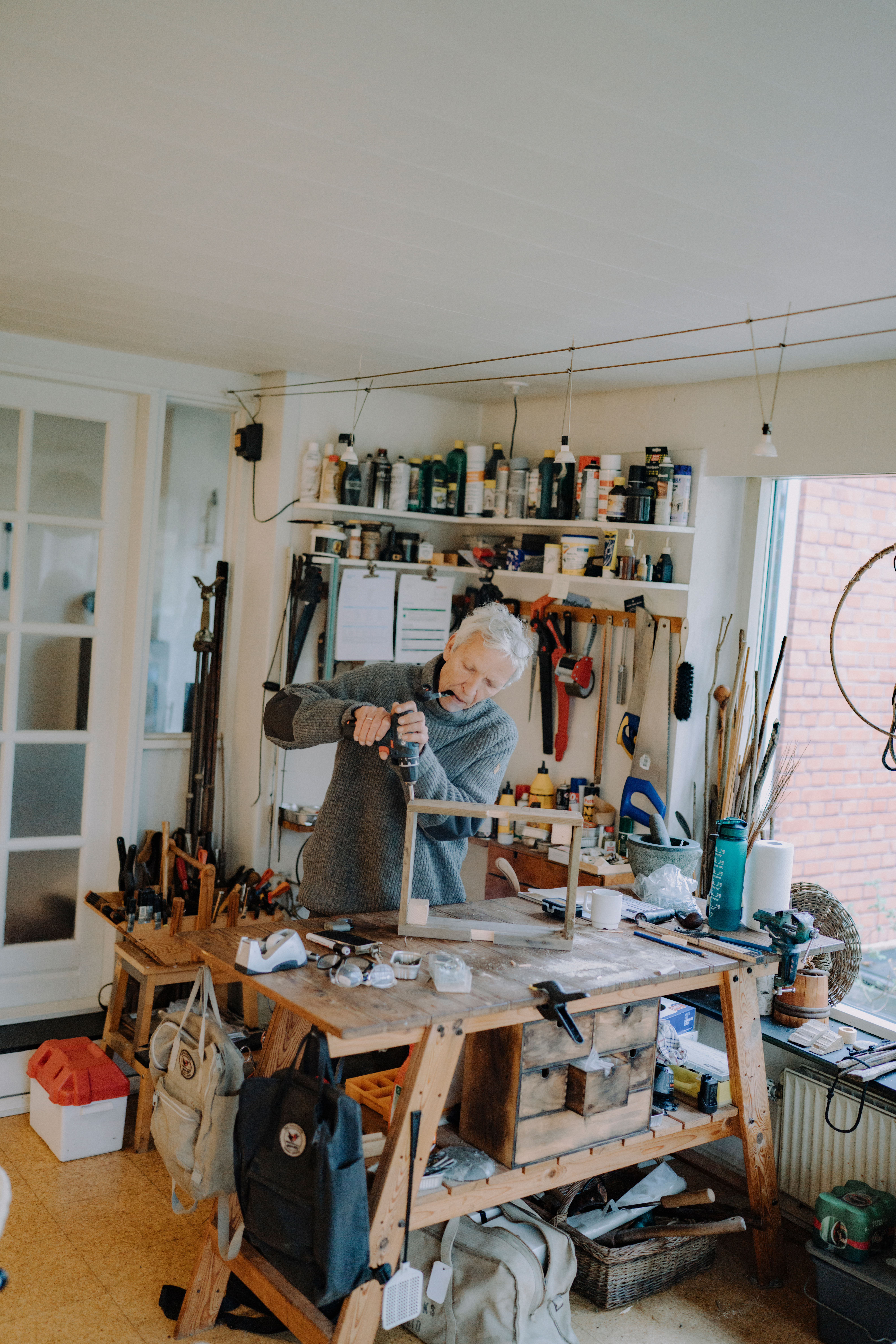Han opmuntrede mig til at bruge energi på det visuelle og lærte mig at tegne med dybde og perspektiv. Senere var vi med i en skolekonkurrence om at lave det flotteste udstillingsvindue til en møbelbutik i Randers. Jeg fik den idé, at bordene skulle hænge fra loftet og stolene svæve på sølvpapir. Jeg ville bryde rammer og traditioner. Vi endte med at vinde konkurrencen.