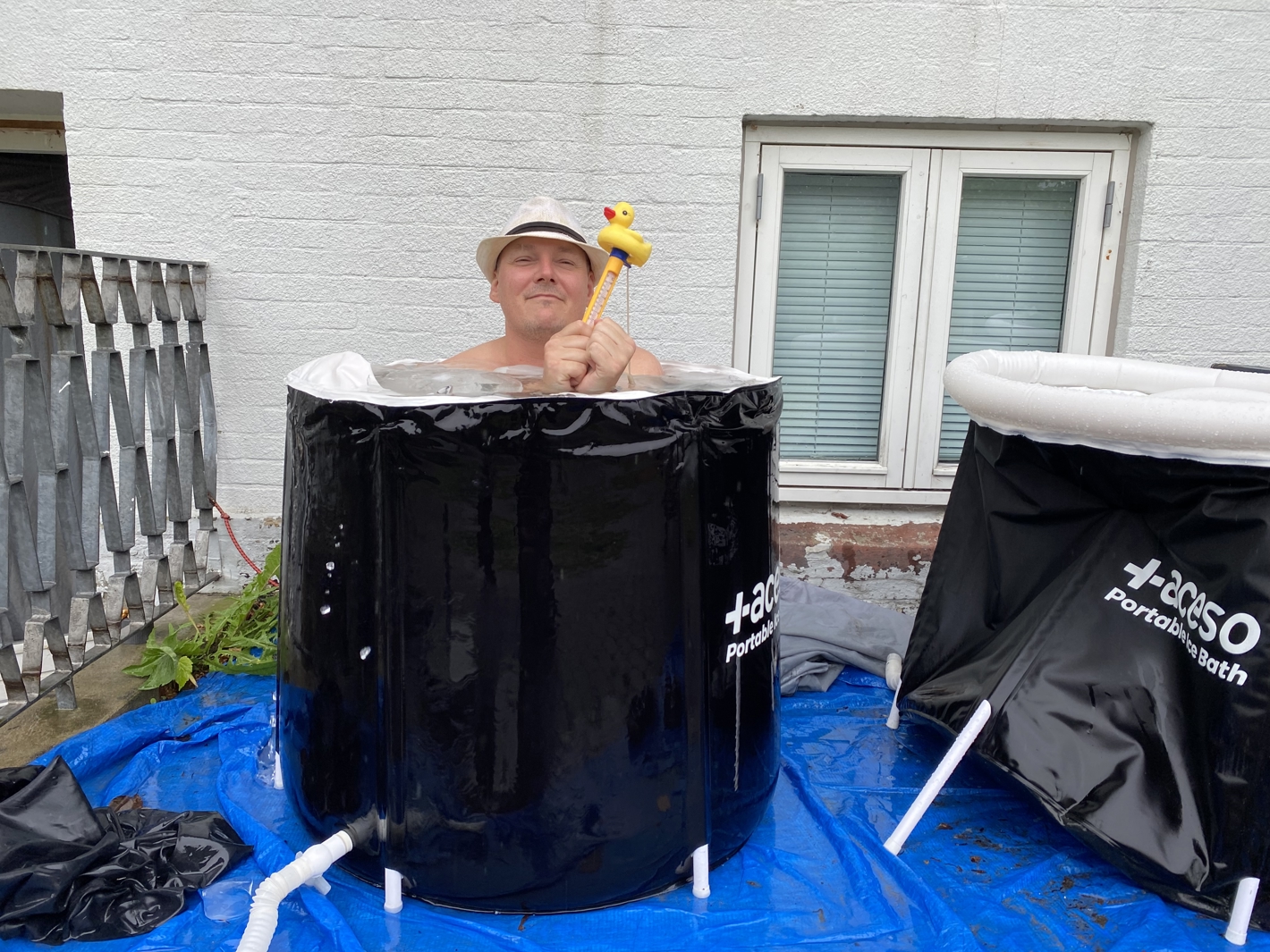 Søren startede Wim Hof-aktiviteten med iskolde bade og vejrtrækningsøvelser op.